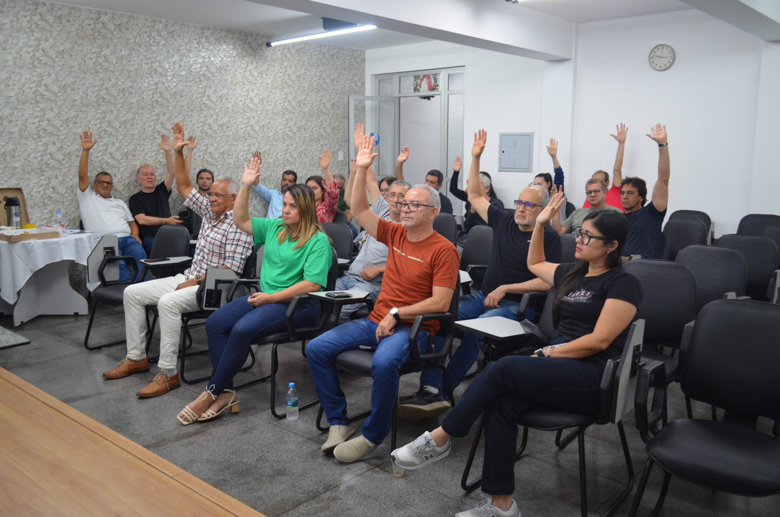 A votação ocorreu durante a Assembleia Geral Orçamentária, realizada de forma híbrida, na sede do Sindicato e pela plataforma Zoom Meetings, garantindo uma participação ampla e acessível à categoria.