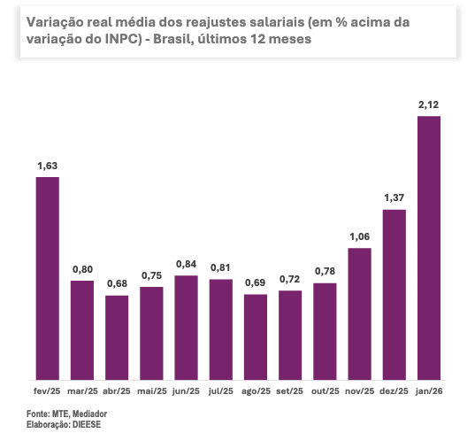 O Dieese ainda pondera que “parte do resultado de janeiro pode ser atribuída à valorização do salário mínimo, que influenciou diversas negociações na data-base”.