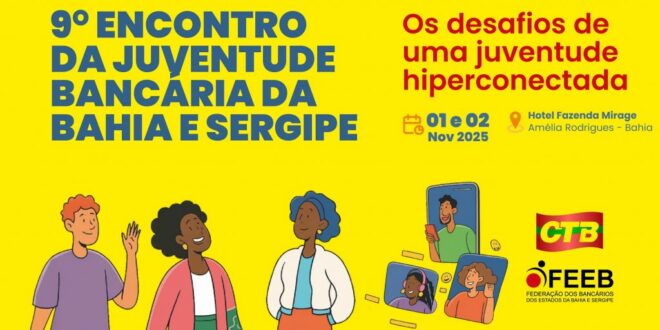 Nos dias 1º e 2 de novembro, os bancários Bruno Maia, Leonardo Viana e Ludson Queiroz, estarão representando o Sindicato dos Bancários de Vitória da Conquista e Região (SEEB/VCR) no 9º Encontro da Juventude Bancária da Bahia e Sergipe, que ocorre no Hotel Fazenda Mirage, em Amélia Rodrigues (BA). Com o tema “Os Desafios de uma Juventude Hiperconectada”, o encontro se propõe a ser um espaço de reflexão, troca de experiências e construção coletiva de estratégias para um futuro mais justo, conectado e humano no setor bancário. Durante os dois dias de atividades, serão debatidos assuntos que dialogam diretamente com …