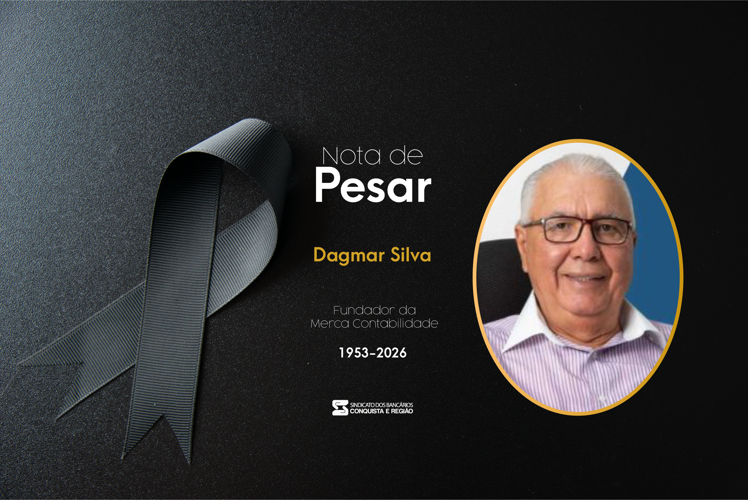 É com grande pesar que o Sindicato dos Bancários de Vitória da Conquista e Região (SEEB/VCR) informa o falecimento de Dagmar Silva, fundador da Merca Contabilidade.