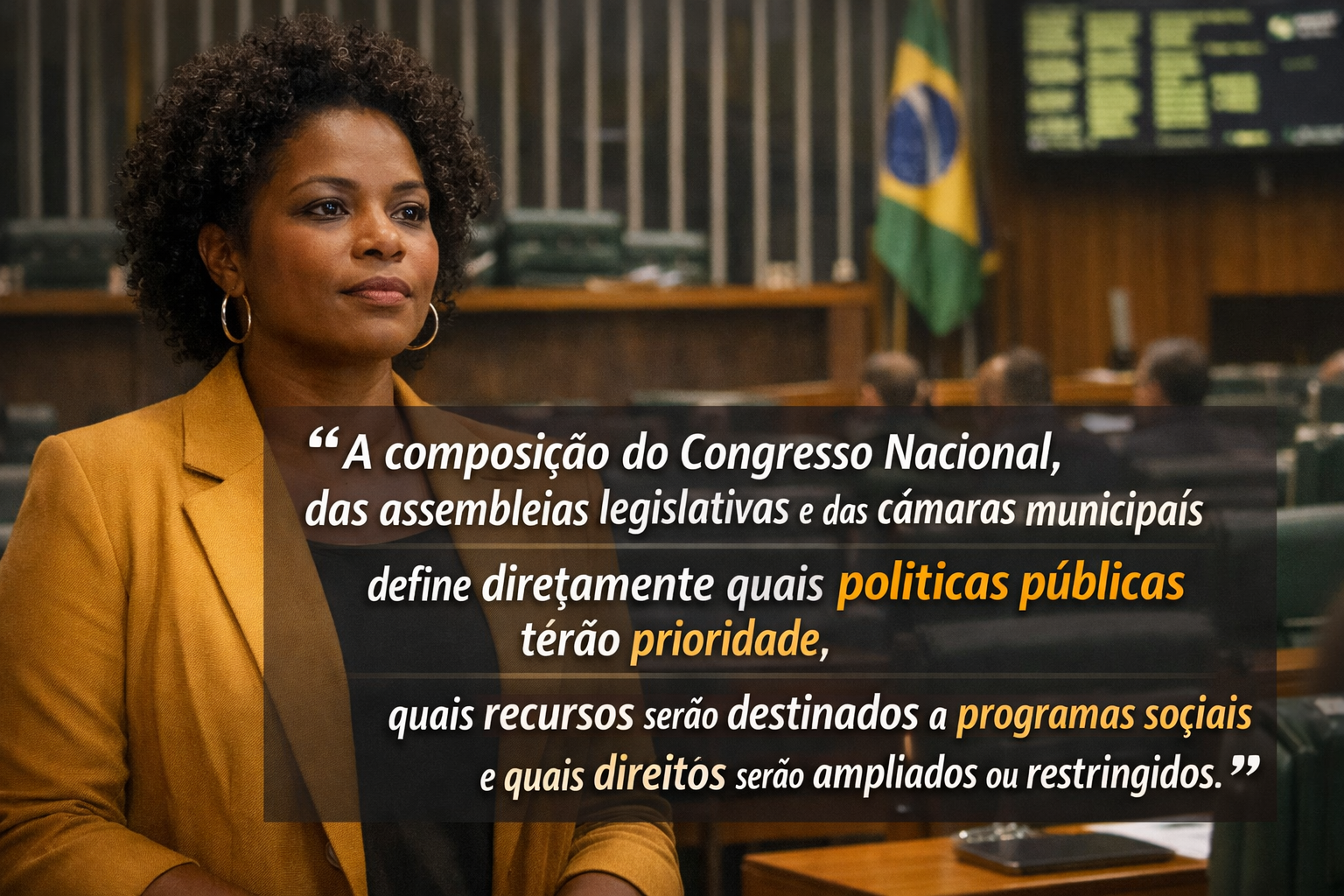 Nesse contexto, com as eleições se aproximando, o debate sobre representação deixa de ser apenas estatístico e assume sua dimensão política e de mobilização. A escolha de parlamentares para o Senado e a Câmara definirá quem ocupará os espaços responsáveis por aprovar leis, estabelecer prioridades orçamentárias e definir políticas públicas que impactam diretamente a vida da população.
