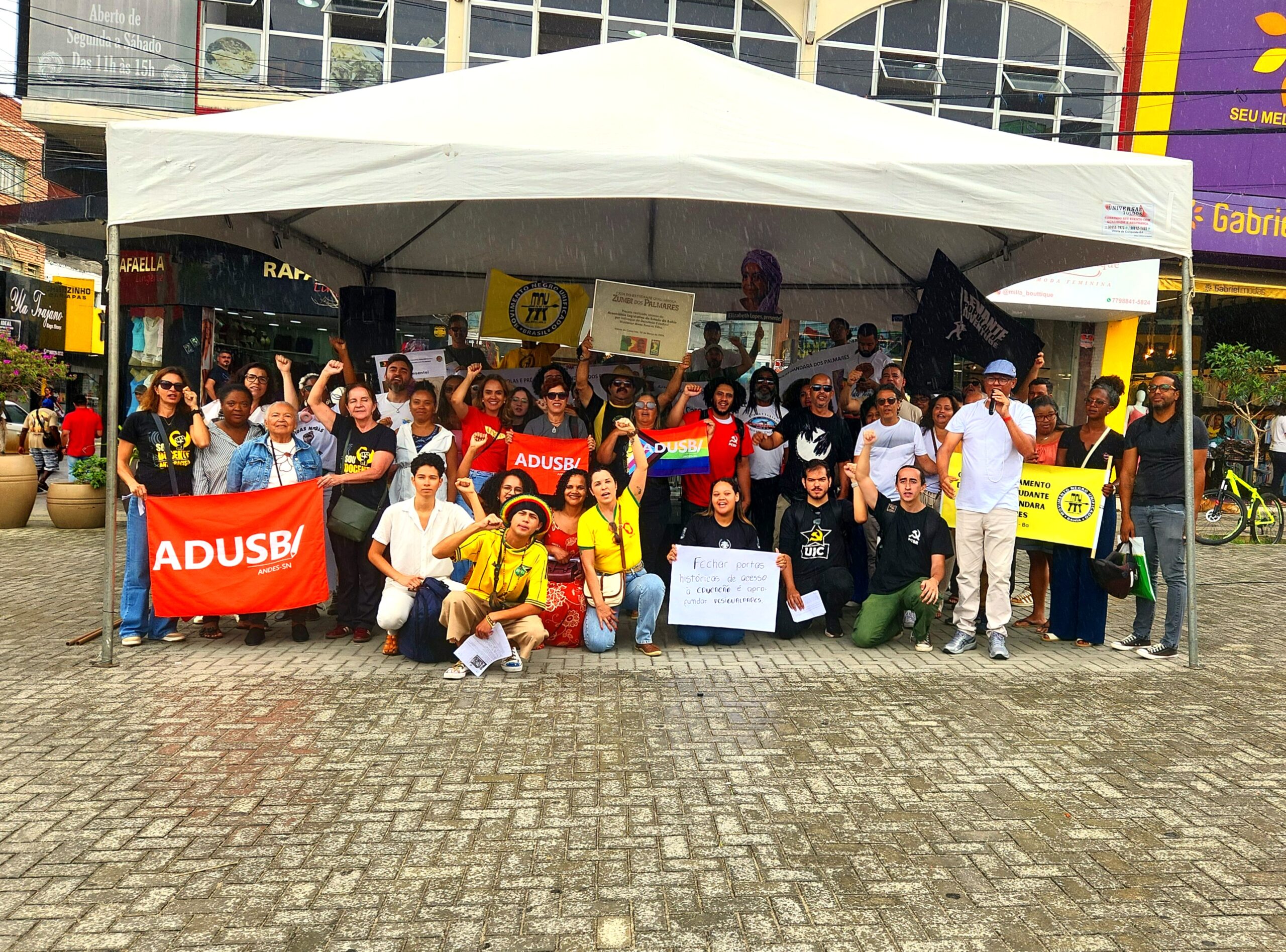 Na manhã desta sexta-feira (9), um ato público reuniu estudantes, movimentos sociais e apoiadores na Praça Nove de Novembro, em Vitória da Conquista, em protesto contra a decisão da Prefeitura Municipal de Vitória da Conquista (PMVC) de encerrar o apoio à Casa do Estudante Quilombola Dandara dos Palmares.